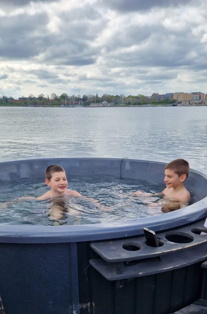 Prije odlaska na avion, na nagovor muža, isprobali smo Hottube – hidromasažnu kadu na otvorenom. Meni je prva reakcija bila – Kako ću sebe i djecu skinuti u kupaći kostim na 12 stupnjeva u zraku? Hladno je!