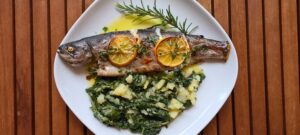 Punjena pastrva i blitva s krumpirom