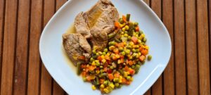 Volim jela u kojima u jednoj posudi dobijem kompletan ručak. Bez puno filozofije, brzo, puno šarenih boja, ukusno i sočno. Ovo jelo možete napraviti i piletinom, biti će jednako ukusno.
