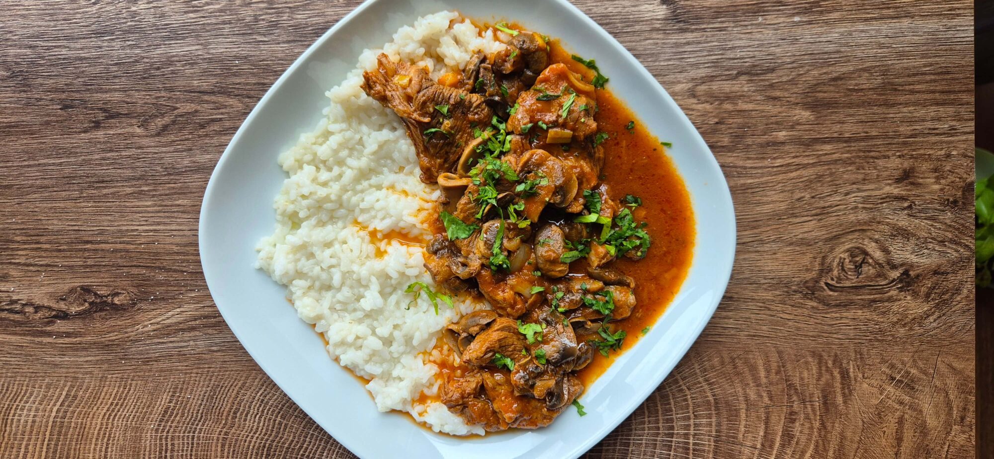 Kuhajte dok meso ne omekša i dok se umak ne zgusne koliko želite. Poslužite uz kuhanu rižu ili tjesteninu.